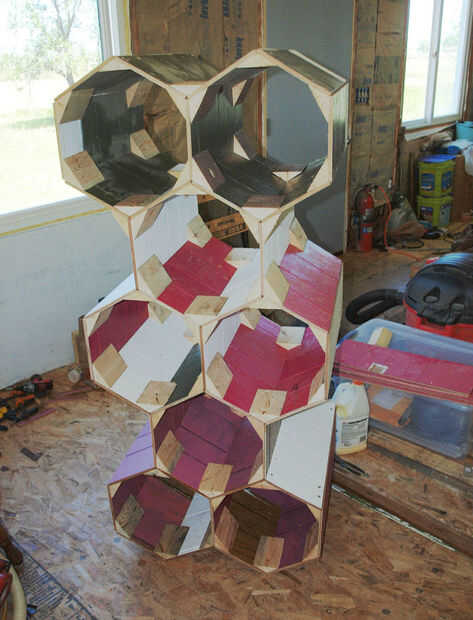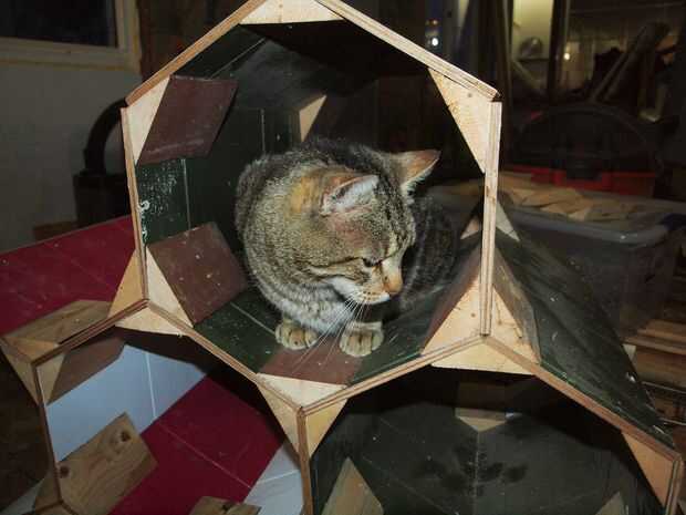 Trabajo en esto le da mucho tiempo para pensar en otras posibilidades. Como por ejemplo, al parecer los gatos gustan mucho. Hmmm, yo podría tener una idea para un condominio para ellos. Y luego están los otros lugares se puede utilizar esta forma. es totalmente adaptable a espacios impares y puede ser ampliado para adaptarse sin problemas y aún sólo hay 2 partes. Alguna vez.