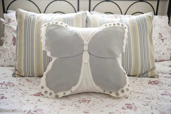 So... ya que fue un éxito tal, que decidí hacer otra almohada de fieltro, pero esta vez en forma de una mariposa. Y ésta es igualmente adorable y fácil de hacer. Así que hice tres!