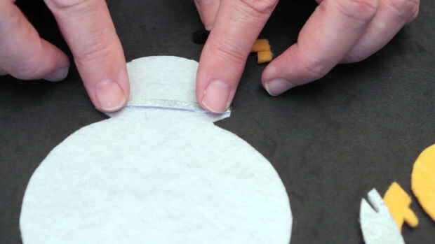 Cortar una tira larga de fieltro gris y pegar sobre la cabeza del BB-8