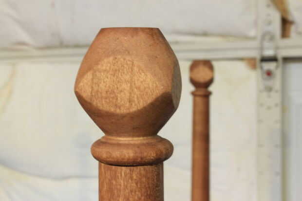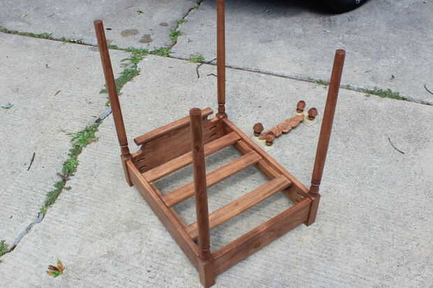 También apliqué una segunda capa de mancha en el marco de la cama en este momento. La segunda capa va en rápido.