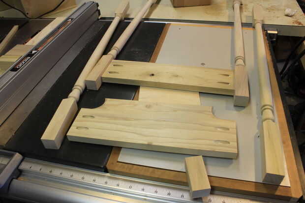 He hecho el cabecero y el tablero de pie primero por pegar y atornillar los postes a las tablas de bolsillo. Usé bloques de chatarra para ubicar la distancia de la parte inferior del post y la parte inferior del marco. Esta distancia es de 1,5" también colocar un pedazo de madera contrachapada de 1/4" bajo las tablas del marco mientras que pegar y atornillar juntos. Esto automáticamente correctamente localizará los consejos de marco a los postes para usted manteniendo apretado en lugar mientras bolsillo lo Atornille juntos.