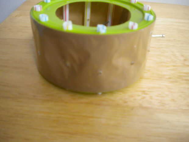 debe ir a través de una pajita en el punto medio, por lo que puede girar en un ángulo ligero como se muestra (ángulo requerirá ajustes adicionales antes de energizar el motor). Inserte una cinta de goma a través de la paja ubicado en 12 y 6:00 posiciones.