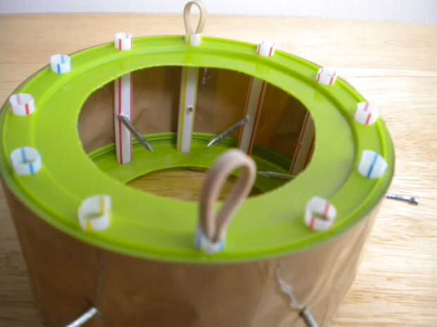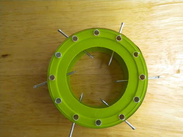 12 taladro agujeros alrededor de circumfernce de la vivienda que son sólo lo suficientemente grandes como para aceptar clavos. Cada agujero
