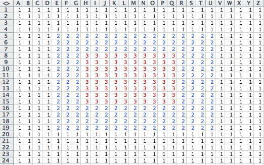 Hacer una tabla de valores como así en excel. Los colores son opcionales.
