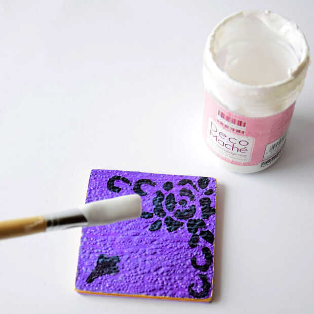 Usando el pegamento decoupage brillante, dan la montaña enfrenta al menos una capa para sellar y proteger. Se seca claro y brillante.