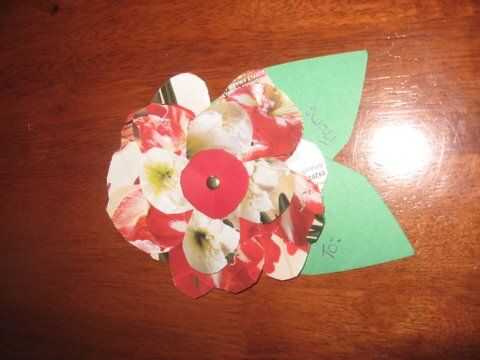 Se pueden doblar los pétalos hacia arriba un poco para darle una tercera dimensión. Escribir a: y de: en la hoja y ponerlo en tu presente. Más fácil que atar un lazo, y no tienes que comprar cualquier cinta. También mejor viendo que escribir en el paquete con un rotulador. (que es lo que suelo hacer)