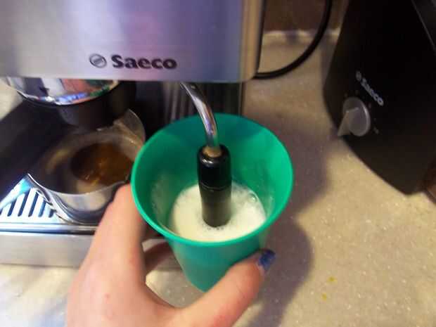Hacia la parte posterior de la máquina hay un tubo de vapor. Tire de él recto hacia fuera y poner el extra taza debajo de él. Presione el botón bajo la primera de ellas y esperar hasta que se ilumina en rojo. Cuando lo hace, gire la perilla lentamente hacia la izquierda hasta que salen agua y vapor. Cuando sólo vapor sale. Encender apagar, descarga todo el agua y llenar parte del camino lleno de leche y poner la taza de nuevo bajo. Hacerlo así es la varilla de vapor en la leche y gire el mando otra vez a vapor la leche. cuando su espumosa y la parte inferior se caliente su hecho. Vierte en la taza de te y disfruta!