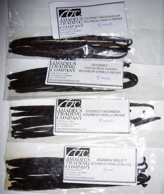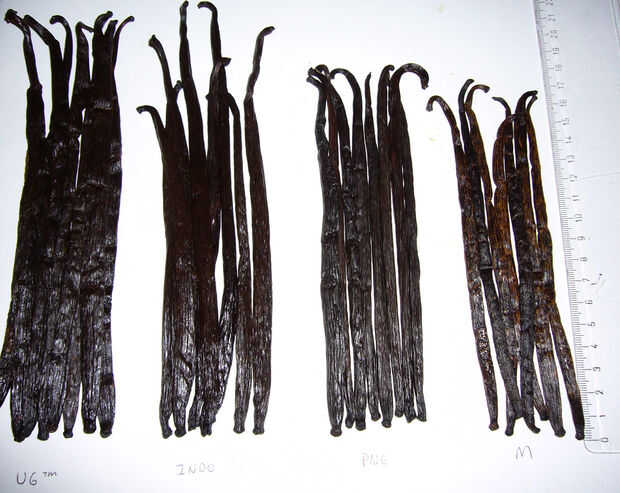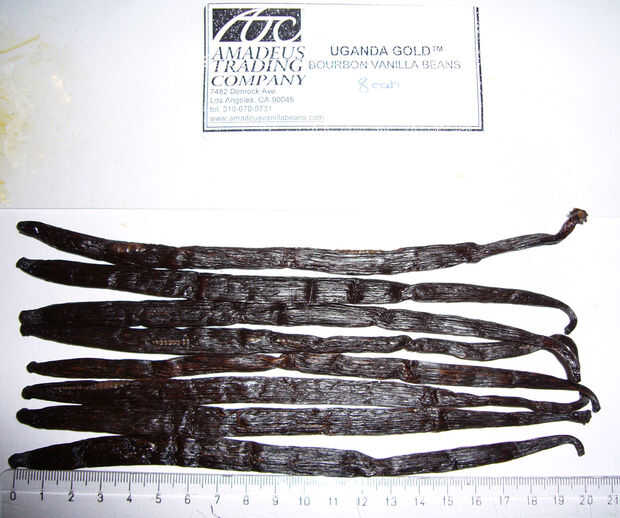 "Los frijoles de Borbón orgánica grado 1 que vendemos en nuestra página web son granos origen de Uganda. Así que si quieres Dale una oportunidad a aquellos, debe conseguir algunos resultados impresionantes. Acabamos de tener nuestro último envío probado, y granos de un solo proveedor en. contenido de vainillina 27%--que es extremadamente alto (un contenido de vainillina buena para granos de Madagascar es. 17% -. 19%--en los últimos años hemos visto tan alto como "muy buenos" resultados. 19% -. 21%. Así que estos granos de Uganda son realmente algo!" Glenn Gottlieb, Amadeus Trading Company, correo electrónico, 22 de diciembre de 2007.