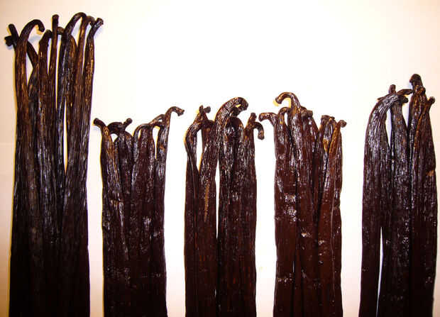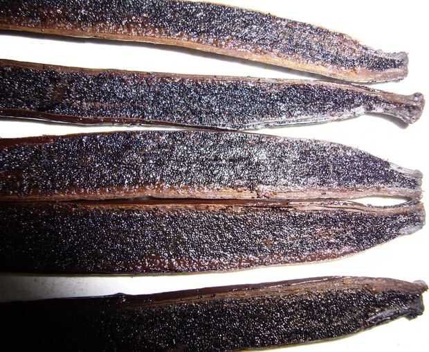Tahitensis de Beanilla son vainas uniformemente regordetas, aceitosas, casi perfectas. Estas son superiores, tahitensis de calidad gourmet y esto se refleja en el precio. A veces frijoles son bastante delgadas, planas y varían en tamaño, son regordetes, amplia y uniforme. Echa un vistazo en la siguiente imagen del 'montón', esta vacuna se pretende darle una vista de cerca buena del perfil del grano. Éstos tienen el aroma floral típica tahitensis. El caviar es esponjoso, ligero y aireado, con una producción mediana. El aceite de estos granos es marrón - caviar generalmente deja un aceite amarillento, ver el cuadro. Vainas de vainilla realmente sorprendentes.