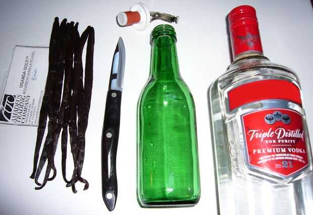 Considerar un vodka de calidad decente, ya que podría tener este extracto durante 10 años o más. Un vodka de alta prueba (más alcohol) no puede extraer como mucho vainilla bondad ( referencia ). Extractos de vainilla comerciales son 35% de alcohol, por la ley. Deje algún espacio en sus cálculos para el agua que los granos va a contribuir.