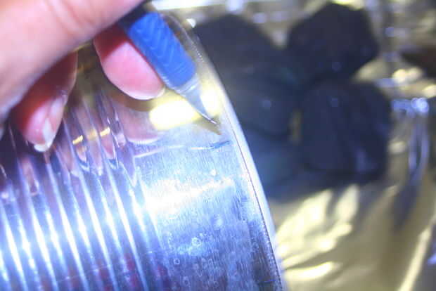 Usando un marcador puede puede marcar las líneas de corte alrededor de la lata, el tamaño de las marcas depende del tamaño de la lata.