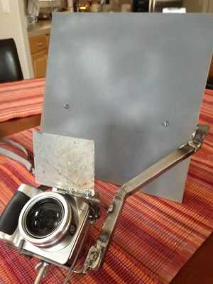 Tengo una cámara digital Kodak z710 con un flash pop-up en la parte superior de la cámara. La foto muestra montado en un soporte de flash de rebote de doble reflector que hice. Un reflector más pequeño justo por encima de la lente se encuentra a unos 45 grados y rebota la luz hasta un reflector mucho más grande que también está situado a unos 45 grados. Uso esta configuración para fotos de Instructables generalmente tomadas a una distancia de dos pies o menos. A través de la experimentación, encontré que necesitaba para hacer las superficies reflectantes de un gris embotado para silenciar un poco la luz y evitar la sobreexposición que elimina detalles. Hace años tengo tarjeta gris de un fotógrafo y había usado con mi medidor de luz portátil. Una tarjeta de gris no altere los colores. Es perfecto para silenciamiento de luz manteniendo cierto colores.