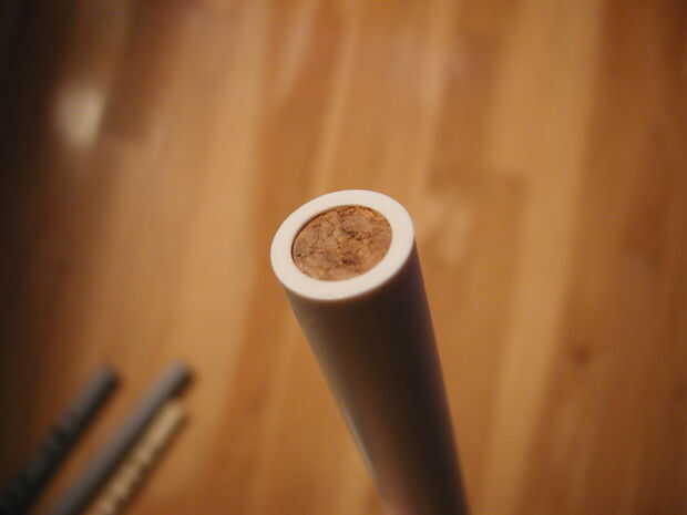 Mi material preferido corcho es, no en vano, corcho real. Parece profesional al final de la flauta y no se hinchan o encogen y soltarse cuando húmedo. Esto es lo que usé para mi flauta G favorito. El problema con tapón de corcho es no has encontrado la fuente que no necesita modificación que cabe 1/2 schedule 40 PVC. Un corcho de vino estándar debe cortarse con un cortador del enchufe. Esto era difícil, trabajo intensivo y frustrante. También no podía encontrar cualquier almohadillas de corcho localmente o suficientemente gruesa de corcho realizable para cortar tacos de