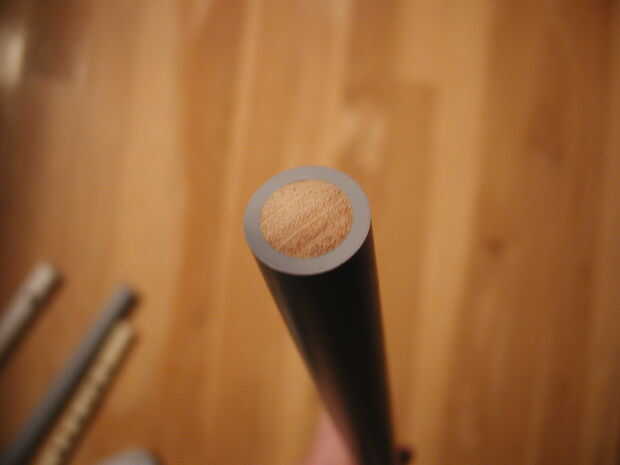Esto me llevó al tapón de goma de mi almacén local del hardware. Los tapones son cónicos pero en grande para caber en el tubo sin modificación. Para instalar un tapón de goma, lo inserto como se pueda, luego cortar el excedente con un cincel ancho con un movimiento suave de corte. Esto funciona bastante bien, pero no es tan limpia o bien mirando como corcho real.