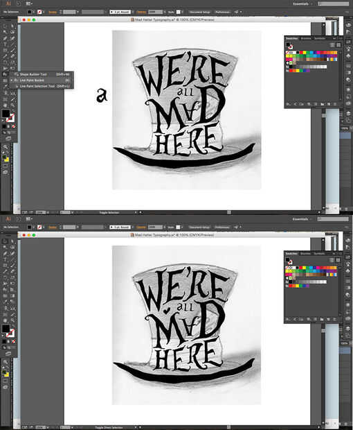 - Mientras todavía está seleccionada, en la barra de menús: objeto > pintura interactiva > hacer.