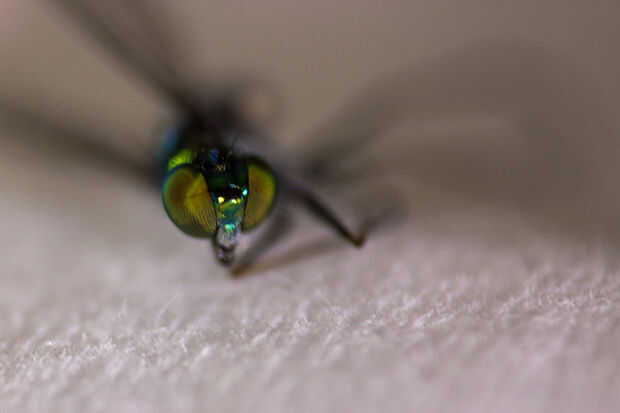 -tomar un primer disparo, se centró en la parte delantera de su tema, en mi ejemplo, mi primer disparo se centra en la cabeza de la mosca.