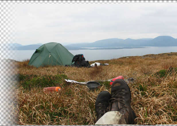 El ejemplo muestra la puntada con solamente un gradiente inclinada. Usted puede ver claramente que la sartén al lado de mis botas es apagado. Esto se puede solucionar fácilmente pintando en la máscara de capa.