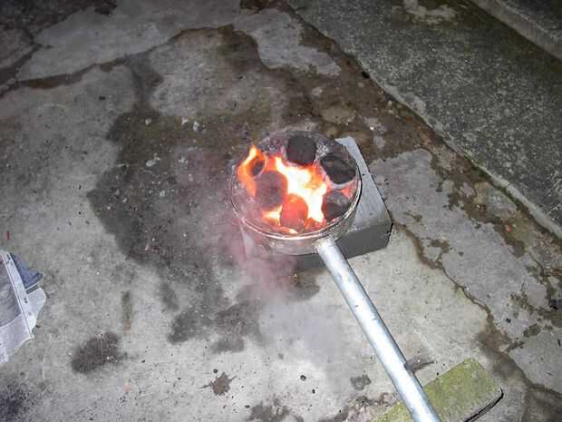 Después de un rato, la fragua se debe quemar lo suficientemente bien como para que usted pueda empezar a trabajar. Los carbones en el fuego deben brillar intensamente un color amarillo brillante. Cuando se trabaja con la fragua, cuando saque la broca de metal que está trabajando, apague el soplador. El fuego no salga y se ahorrará algunos electricidad.
