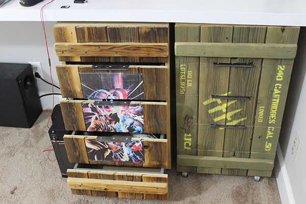No se contentarán con regular buscando frentes de cajón. Ver cómo hacer los armarios parecen las tapas de cajas de munición. Los frentes de cajón se pueden hacer de la chatarra o plataforma de madera y las empuñaduras están fabricadas en acero de bar barato.