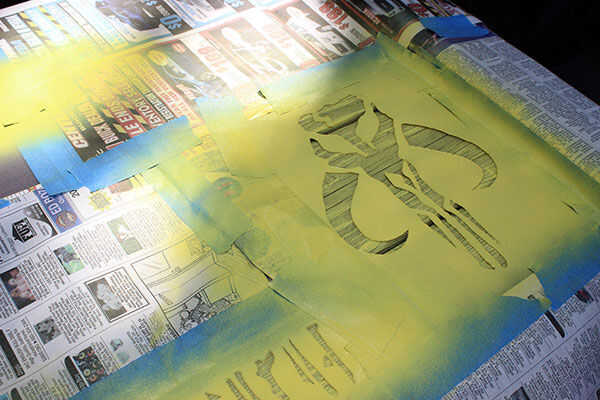 He hecho mis plantillas de algunos separadores plástico que alguien iba a tirar. Más semi rígidas de plástico se pueden utilizar como una plantilla reutilizable. He incluso usado tarjetas en el pasado y fue capaz de usarlos un par de veces antes de empezar a deformar. Hacer sus plantillas por imprimir lo que quiere, transferir el material de la plantilla y corta con un cuchillo de la manía.
