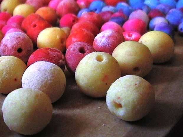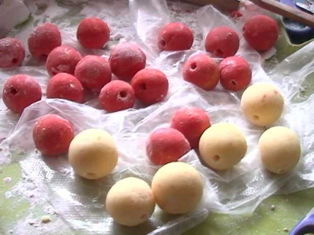 Retire de la estufa. Cuando todavía están tibias amasar la mezcla de porcelana en frío 1/3 con mezcla de plastilina de 2/3.