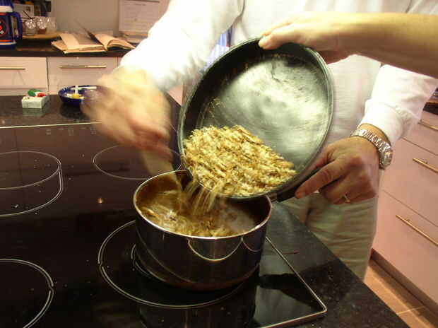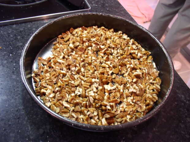 Si agregas nueces, ahora es el momento. Blanquear en el horno a 350 durante 5 minutos, luego retire y agregue para mezcla de fudge.