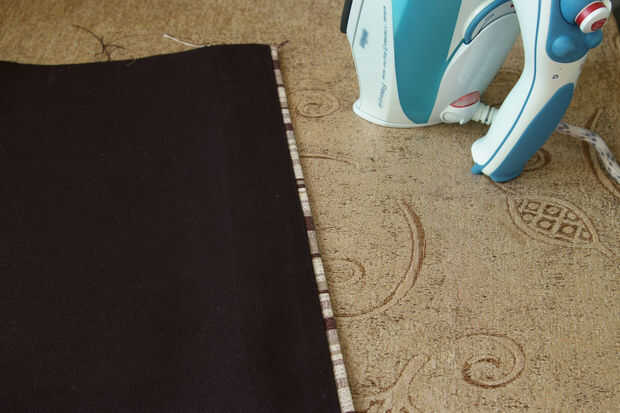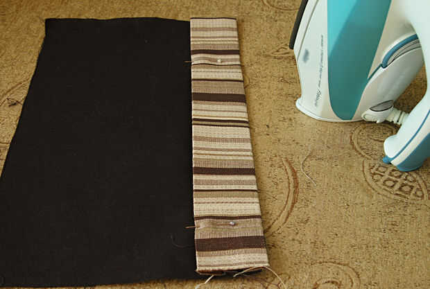 Doble rayas #3 dos veces, hierro y pin. Asegúrese de que sólo 1/4" de la misma permanece visible en el borde del lado derecho del panel marrón #2. El perno en el lado equivocado.