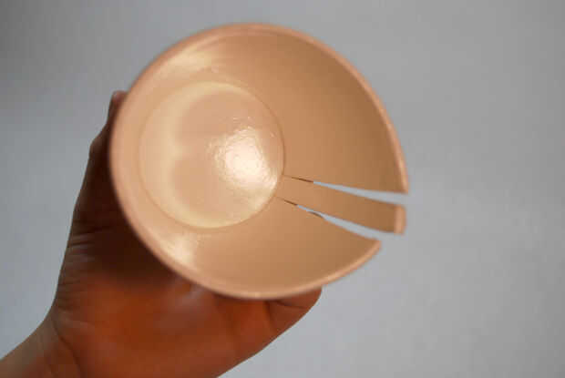 La Copa se ve naturalmente reforzada en el traslapo costura. Corte a lo largo de ambos lados de esta costura y dóblelo hacia abajo.