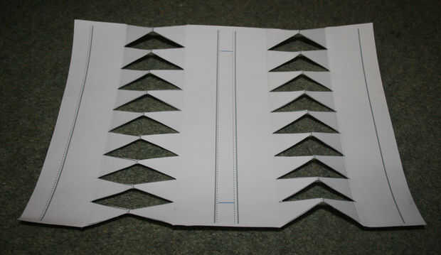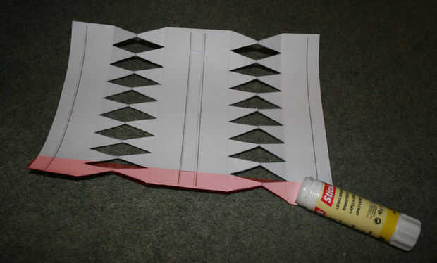 Luego aplicar pegamento a lo largo del interior edge, al grosor de un "triángulo". (En la segunda foto he resaltado la zona de pegamento en photoshop para que sea más fácil de entender) Luego enrollar la galleta y sostenga hasta que su pegado :D
