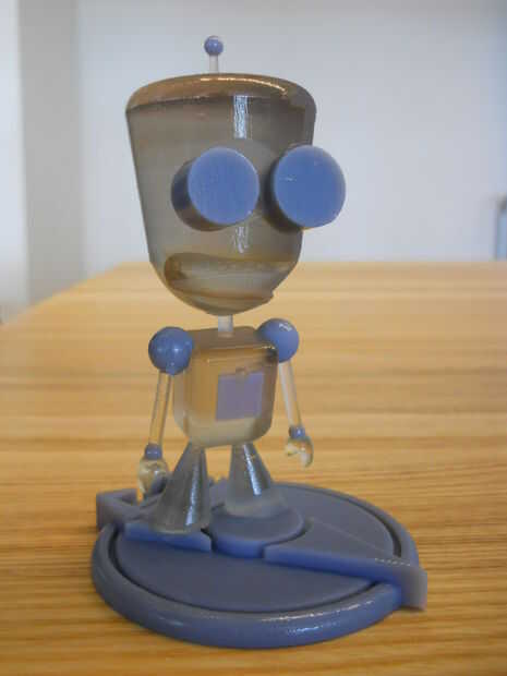 En fin, imprimí dos Girs: una más grande (hecho con VeroWhite y TangoBlack) y una más pequeña (hecho con VeroClear y VeroBlue). Y me encontré dos interesantes consejos sobre materiales: