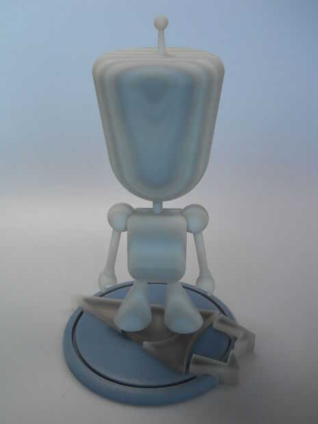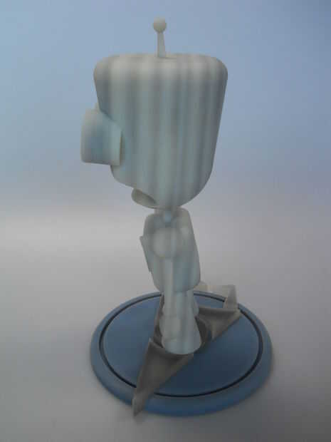 1. ver la grande. La coloración "zebra" no es una alteración de Photoshop o un problema con las luces. Sucedió porque elegir el modo automático en Objet Studio, que permite a la impresora 3D manejar los materiales para completar la impresión. Había una pequeña cantidad de VeroWhite y bastante TangoBlack, así que Gir fue impresa en capas de diferentes materiales.