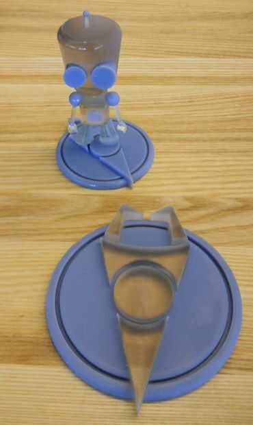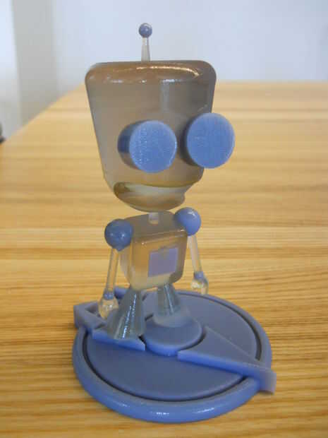 Imprimí el pequeño Gir, con la base ya conectado y montado. Las partes verdes en el diseño y la base, fueron impresos en VeroBlue. El resto del cuerpo fue impreso en VeroClear.