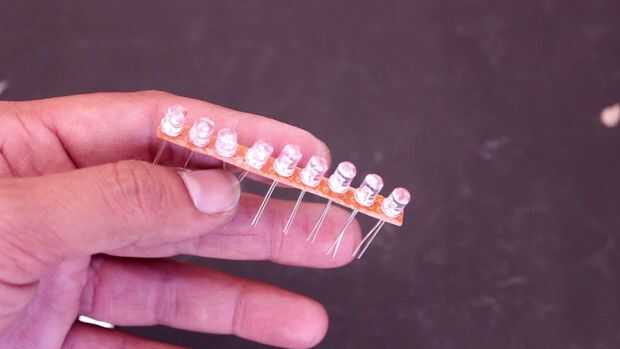 Tomar la placa PCB y separar una pequeña porción y cortar exactamente el tamaño del árbol y rellena la junta con soldadura de luces led las colocar todos positivos por un lado y los negativos por otra parte.