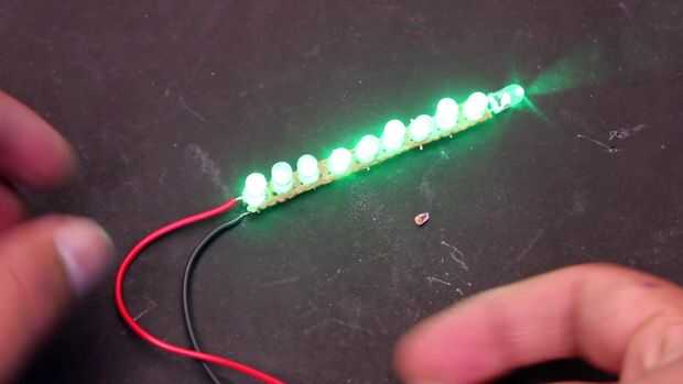 Luego tome otra luz led y soldadura sobre la parte superior del tablero como se muestra y soldar los cables y comprobar que las luces son brillantes o no.