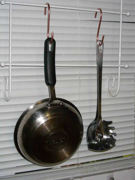 Siempre me ha encantado el look de ollas y sartenes colgando encima de fregaderos, islas y estufas en revistas y tiendas. Y siempre me he sentido insultado por los precios de las parrillas y los ganchos de s. ¿Concedido, algunos de los ganchos son bastante resistente del acero inoxidable, pero cinco dólares cada uno?
