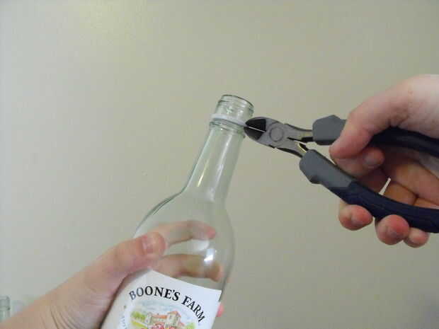 Enjuagar las botellas (no se preocupe acerca de cómo ellos super limpio ni nada, ellos a remojo antes de demasiado largo) y utilice el cortador de alambre para cortar el el anillo metálico de torcer la tapa. También puede desechar los tapones, a menos que usted utilizaría algo de tapas de botellas planas.