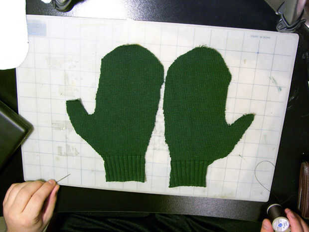 Repetir el corte paso hasta que haya más piezas de manopla para coser juntos. Una vez más, usted necesitará cuatro... dos para cada mano... delantera y posterior.