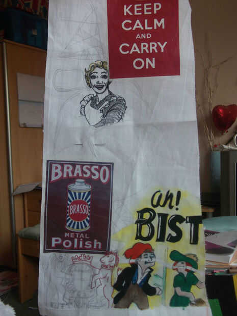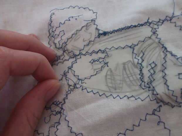 Uso de pintura y costura de zig zag para recrear algunas imágenes de la 2 ª Guerra Mundial de su elección.