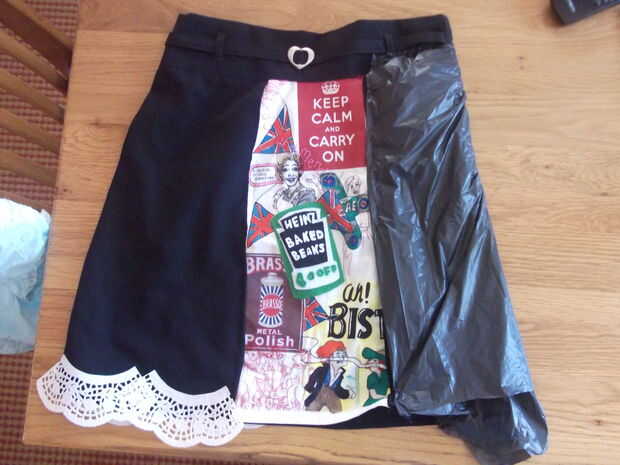 Luego, añadir algunos toques finales. Añade una capa en una textura diferente con una bolsa de basura negra y ha añadido algunos flecos con una servilleta de papel para que se vea aún más 'hacer hacer y Mend' temática!
