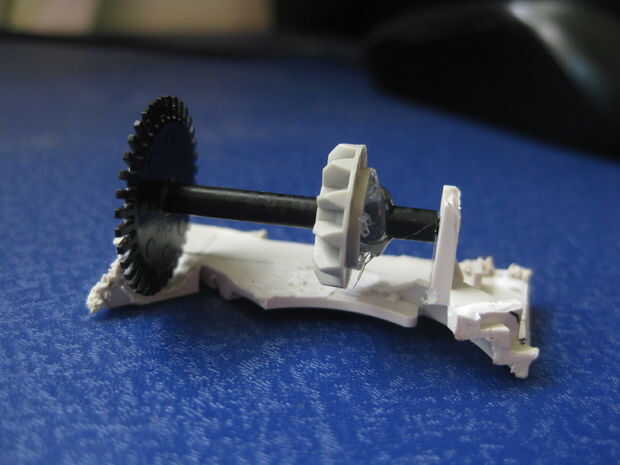 Palillo del engranaje en el eje, dejando suficiente espacio para el engranaje de acoplamiento. La parte difícil es mantener el equipo centrado en el eje. Si se gira mientras el pegamento es, puede Dile qué partes están apagados y corregirlos suavemente.