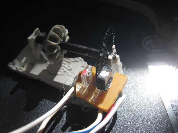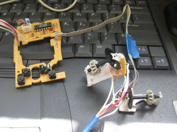 Utilice una hoja de afeitar o herramienta rotativa para trasladar la sección de placa de circuito con las piezas ópticas. Esto ayuda a asegurar que están a la misma distancia aparte como son significados para ser, que resulta para ser bastante crucial. Luego use unos cables para soldar entre sí los puntos hacia atrás. Por último, pegue todo abajo, teniendo cuidado de mantener todo alineado. Puede dejar el ratón enchufado mientras haces esto para asegurarse de que todo quede alineado.