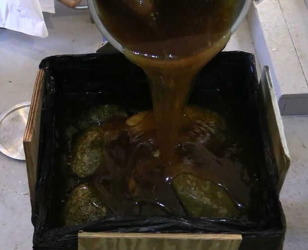 Vierta en incrementos de, si no hay suficiente ComposiMold para cubrir las rocas en una vaciada. Cuando se vierte en capas la composimold derretida se derretirá y fusible en la capa que ya ha sido derramada.