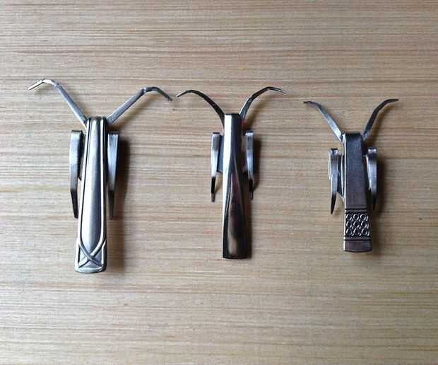 , por lo menos tenía una idea para trabajar con. Después de atornillar un poco surgió con estos bichos de la horquilla. Hice un par y son todos únicos; puesto que cada tenedor es ligeramente diferente, cada error tiene un aspecto diferente a él.