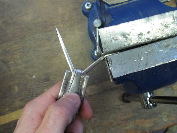 -Utilizar la prensa para doblar los extremos de las antenas rectas hacia fuera a los lados, o en una curva suave.