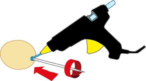 Ponga algunos caliente del derretimiento en el extremo de un palillo y empuje suavemente hacia el huevo en un extremo por lo que la mayor parte de él sobresale. Mantenerla hasta que se establece y añadir un poco de fusión en caliente, pegamento pistola de pegamento en el exterior si es necesario.