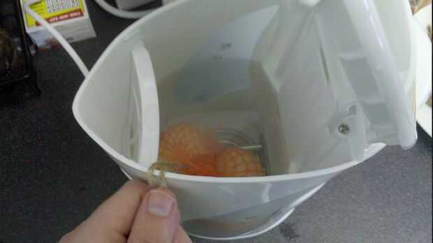 Una vez que esté frío lo suficiente como para tocarte puede Abra el lazo y tomar los huevos hacia fuera (que todavía estará calientes).