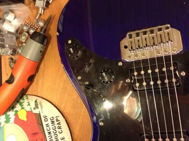 Si sólo estás añadiendo un interruptor como lo hice, entonces todo lo que queda por hacer es Conecte el alambre nuevo de la camioneta a un lado del interruptor y un cable desde el otro lado del interruptor a tierra. Mi conmutador es un tipo DPDT para que ambos de mis pastillas puedo conectar de esta manera. Yo había considerado 2 interruptores que podía cambiarlas independientemente, sino me falta el espacio dentro de la cavidad de mi guitarra.