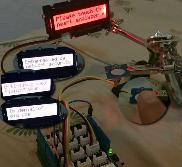 En este punto, ya puede tratar de un simple dibujo como mi "Analizador de corazón" (ver foto) como la energía viene del USB. Una vez que se cambia a energía de la batería, desaparece el texto, aunque todavía se pueden ver cambios de color de luz de fondo (por eso "analizador de corazón" es buena para mostrar el problema).