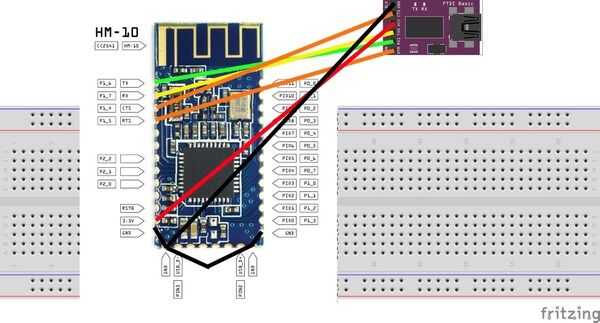 Ahora veremos cómo conectar hm10 con el ftdi. HM10 trabaja con voltaje de 3.3 y no recomendable para ponerlo en un voltaje más alto. Aquí está el esquema de los terminales y cómo conectarlos:
