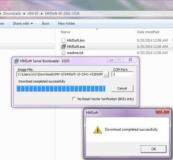 -Primero descargar el firmware de esta web sitehttp://www.jnhuamao.cn/download_rom_en.asp?id=1Be cuidado de elegir el modelo correcto del chip, aquí tenemos cc2540 y cc2541. Echa un vistazo al módulo y ver que modelo de chip tienes y descarga el firmware.-para entrar en modo de actualización, tienes que ir en el software de arduino IDE y elegir COM puerto (serie o en mac) y abrir monitor de serie. En el monitor serial set velocidad en baudios a "9600" y "sin línea", y luego escribir "AT + SBLUP" sin comillas. El hm10 debe responder con "OK + SBLUP"-cuando termines con eso, abrir una carpeta donde extrajo firmware, iniciar programa, elija el puerto com de ftdi. Al fina es elegir archivo img y el archivo .bin seleccione en la carpeta y finalmente haga clic en carga de imagen buttonDO no interrumpir el proceso de actualización. PUEDE DAÑAR EL MÓDULO!